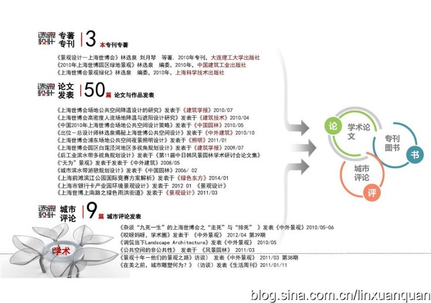 主持100余項(xiàng)規(guī)劃與設(shè)計(jì),發(fā)表過50多篇論文與作品,