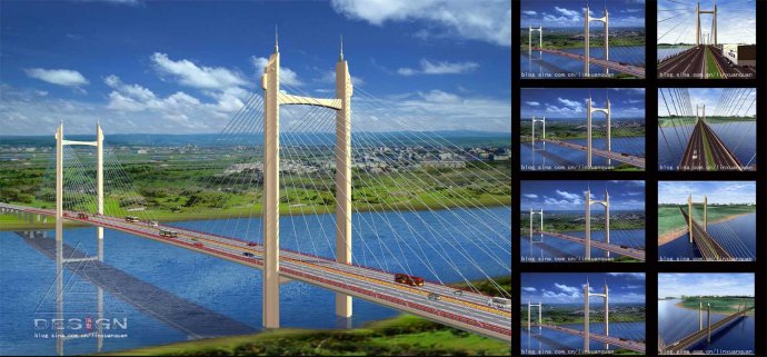 橋梁架在河流上作為景觀裝點著大地,一座大橋由于本身規(guī)模宏大,氣勢磅礴,自然成為獨立景致,以而成為該環(huán)境主要景觀。